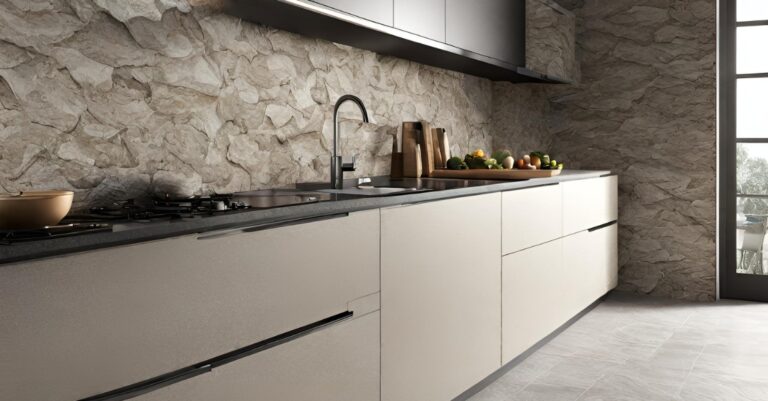 Las texturas juegan un papel igualmente importante, con acabados que imitan la madera, la piedra, y el mármol liderando la tendencia. Estas texturas no solo añaden profundidad visual sino que también invitan al tacto, aumentando la sensación de calidez en la cocina. Además, los acabados mate y satinados se presentan como soluciones prácticas y estéticamente agradables, facilitando la limpieza y mantenimiento, a la vez que ofrecen un look moderno y sofisticado.