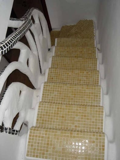 Típico gresite de piscinas con acabado antideslizante que nos aporta la ventaja de no sufrir ningún susto mientras disfrutamos de un agradable baño en la piscina o ducha.