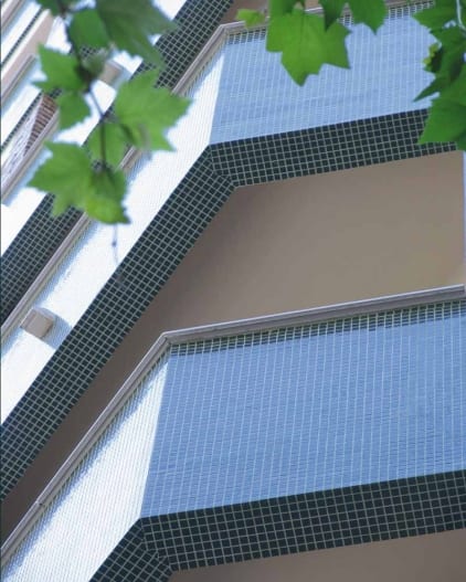 El gresite Verde Oscuro es ideal para piscinas, ya que su color profundo y su acabado en brillo complementan perfectamente el entorno acuático. La instalación en mallas de silicona facilita su manejo y colocación, asegurando un ajuste preciso y una adhesión segura.