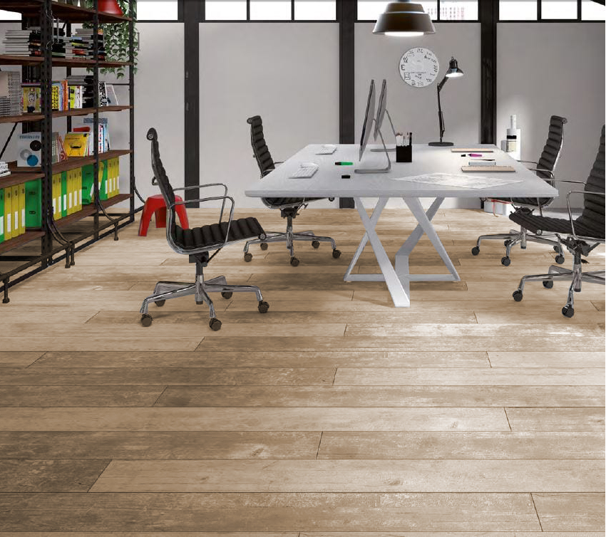 Aporta todas las ventajas de la madera natural gracias al porcelánico pero sin los inconvenientes de esta.