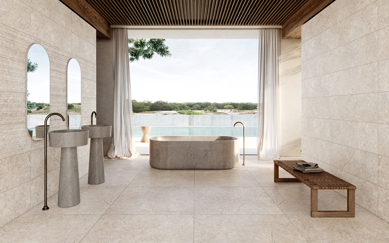 Este revestimiento, con un acabado natural y rectificado, está diseñado para complementar perfectamente con el porcelánico de Alchemy Floor.
