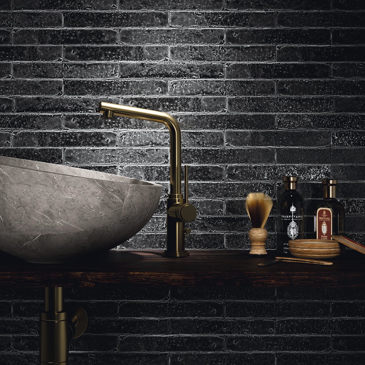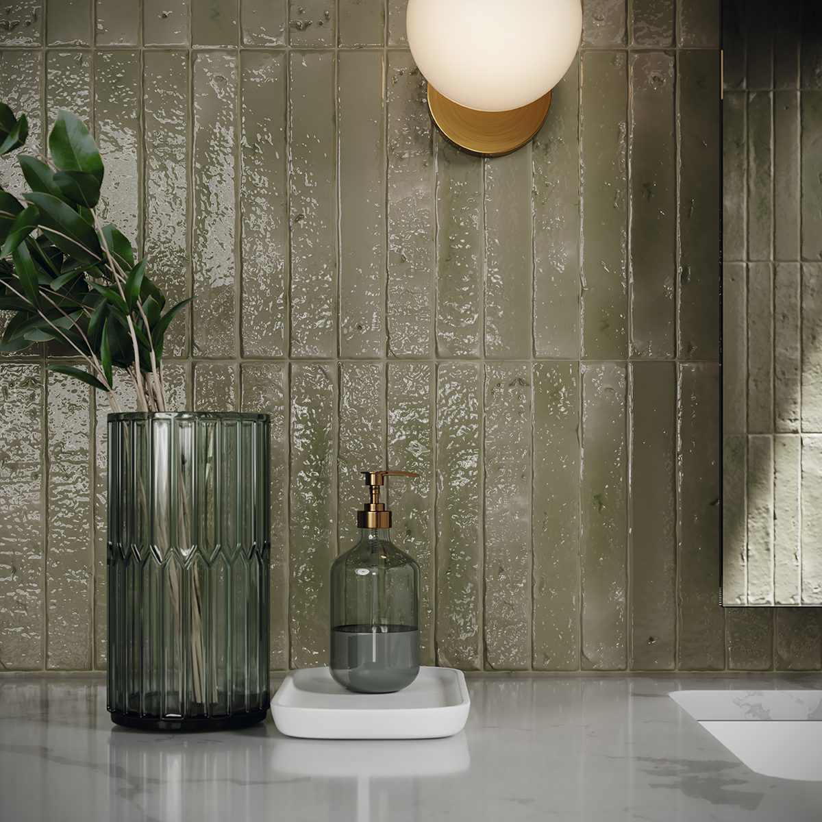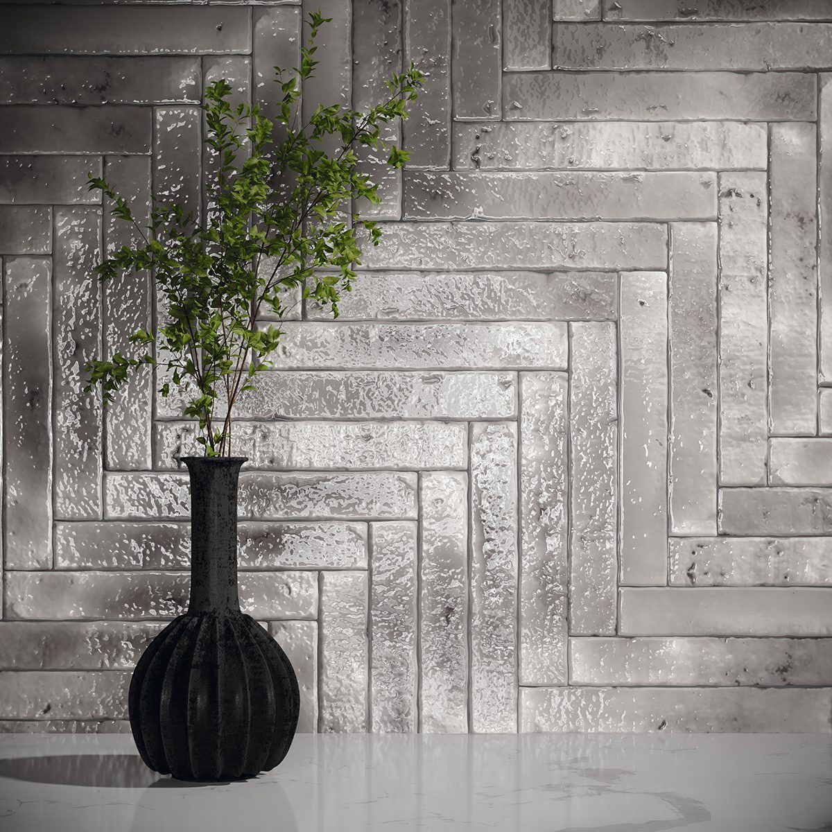 Azulejo de efecto Zellige en formato 3,8×23,5 cm de estilo wabi-sabi Cada color presenta nueve superficies diferentes, de aspecto muy irregular y desgastado, que crean un intencionado contraste de tonos y relieve entre las piezas. Hay veintiún colores diferentes en tres tipos de acabado: brillo, mate y craquelado. Descubra la belleza de la imperfección.