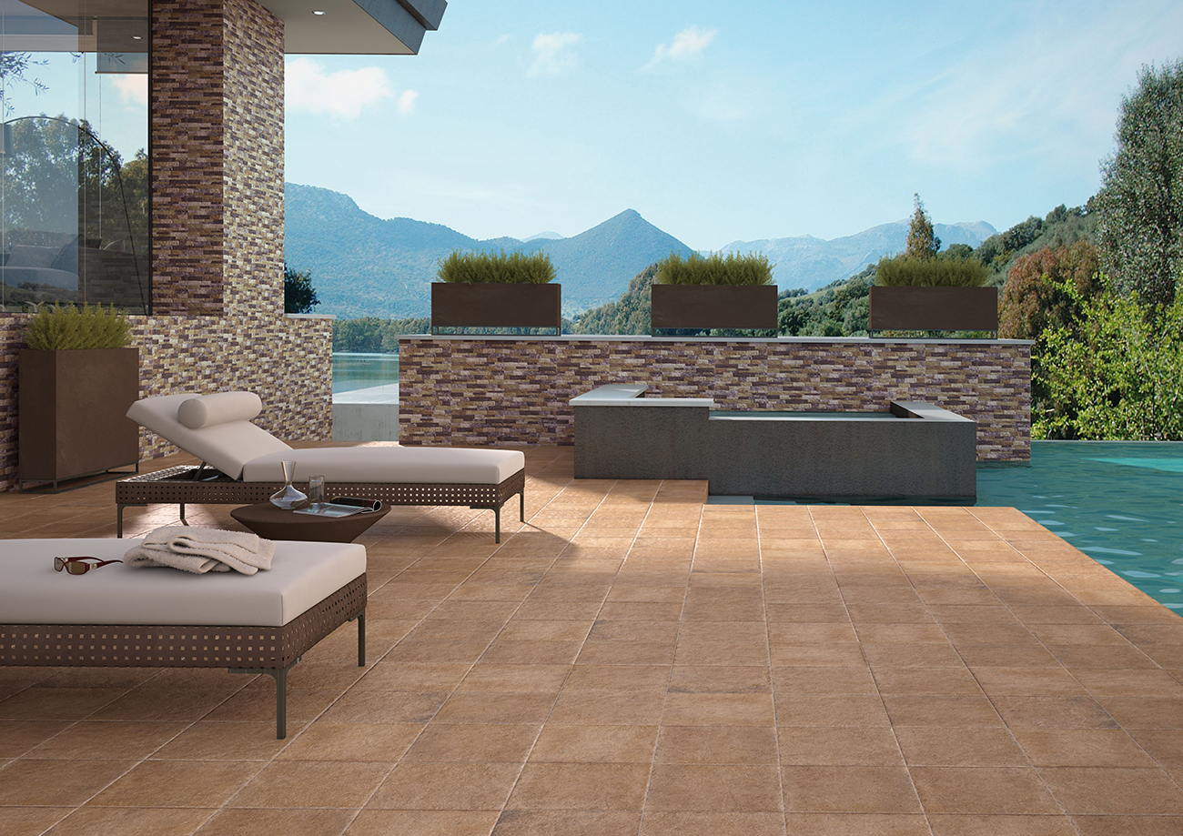 Con un formato práctico de 33.3×33.3 cm, esta serie es perfecta para crear ambientes rústicos y acogedores en terrazas, patios o jardines.