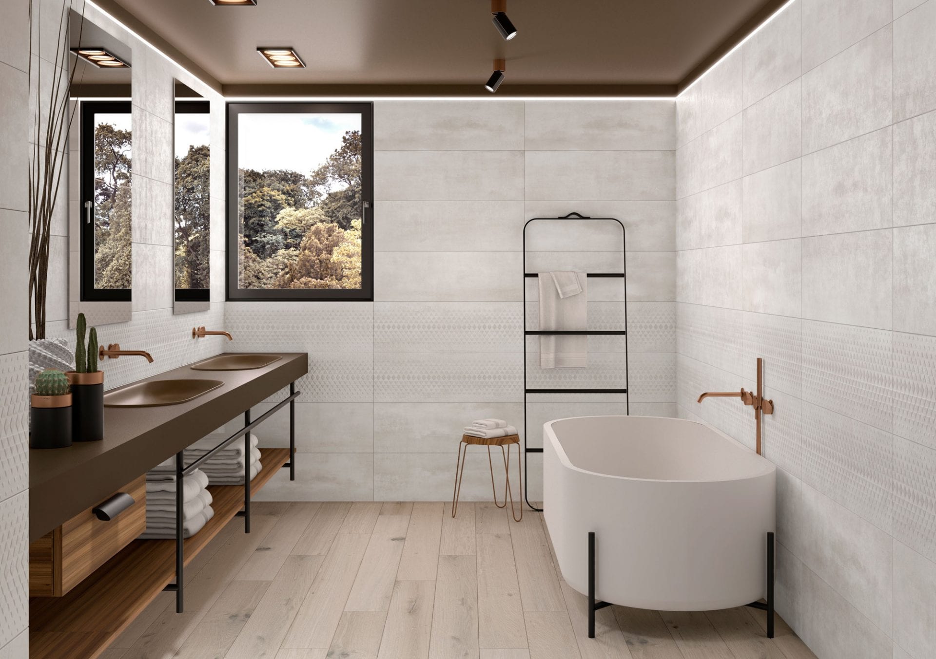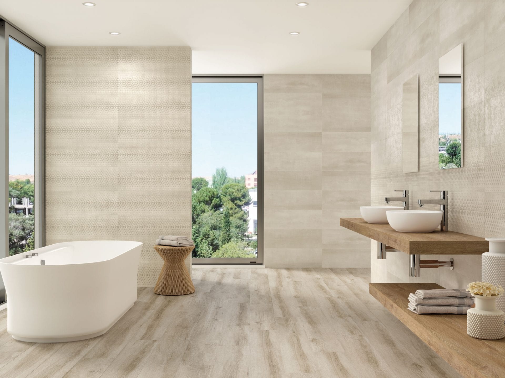 Su suave textura con un mínimo relieve caracterizan a esta serie haciéndola perfecta para revestir cualquier pared.