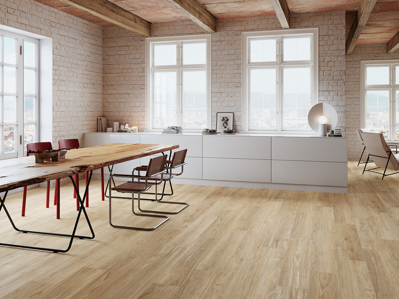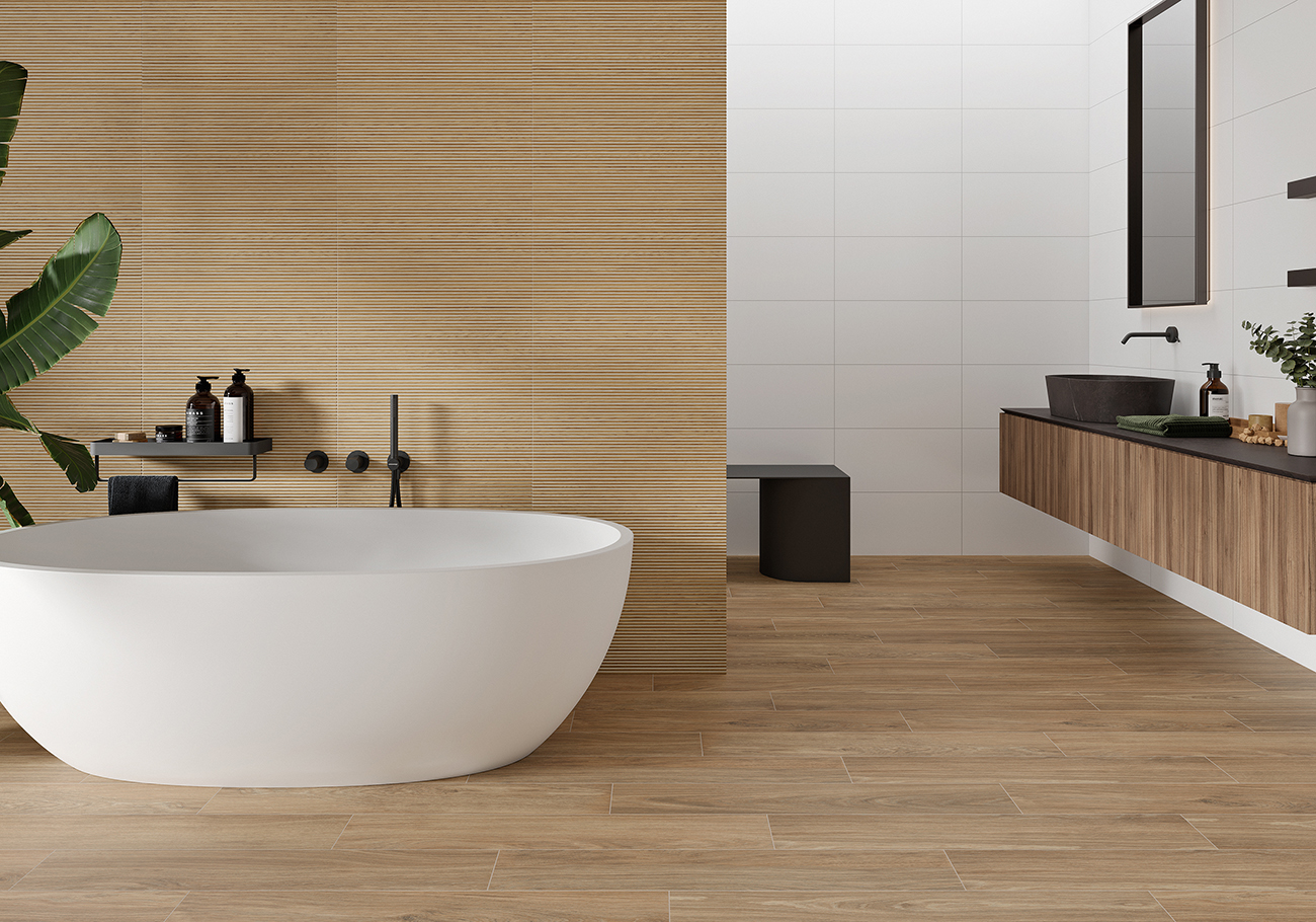 Disponible en formatos 23×120 cm y 15×90 cm, la serie Colton permite una gran versatilidad en la instalación, logrando efectos visuales continuos que aportan una sensación de amplitud y naturalidad en cualquier espacio. Su acabado mate ofrece un aspecto suave y discreto, que realza la textura de la madera sin brillos intensos, creando ambientes relajantes y elegantes.