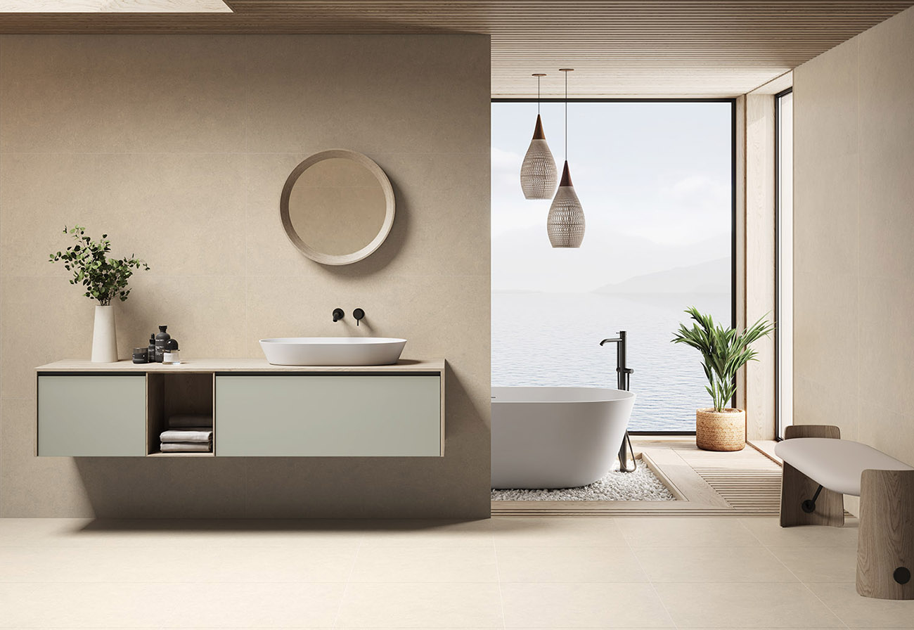 El acabado cemento mate de los azulejos Cromat ofrece una apariencia natural y discreta, que se integra fácilmente con otros materiales y elementos decorativos. La ligera variación de tono (V2) entre las piezas añade profundidad y dinamismo a las superficies, creando un ambiente más rico y acogedor. Esta característica, junto con la paleta de colores neutros, permite crear espacios equilibrados y armoniosos.
