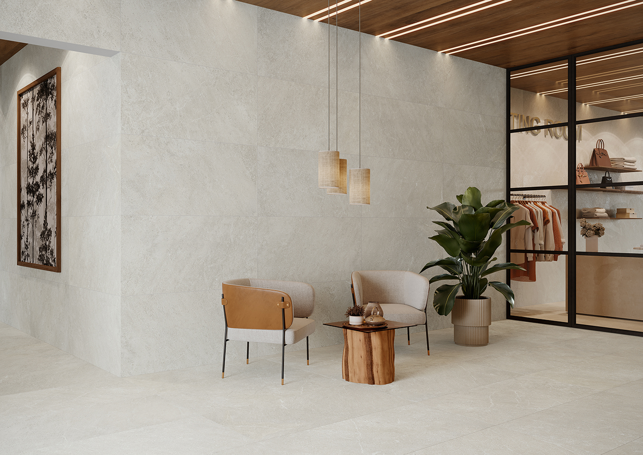Disponible en dos formatos: 100×100 cm y 60×120 cm, la serie Eiras permite crear superficies continuas y uniformes, aportando amplitud y un estilo depurado a las estancias. Los colores grey y bone proporcionan una gama cromática neutra y suave, perfecta para adaptarse a una amplia variedad de estilos decorativos, desde los más minimalistas hasta los más acogedores.