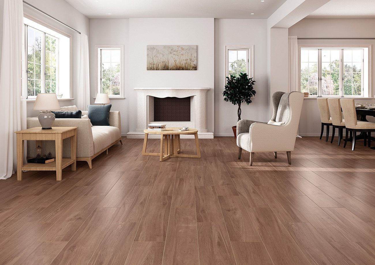 Aporta todas las ventajas de la madera natural gracias al porcelánico pero sin los inconvenientes de esta.