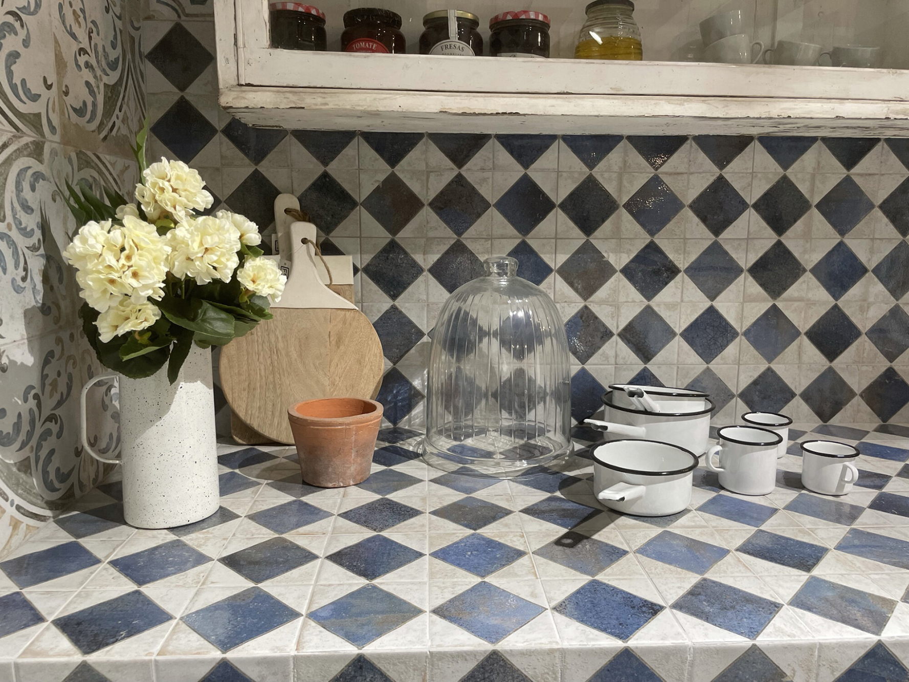 En esta colección de 33×33 realizada con la técnica Layer Tech, Francisco Segarra viaja a la Provenza Francesa. Los tacos de colores alternados con el fondo blanco presentan un potente brillo fruto del uso de granillas impresas digitalmente. De esta forma se utiliza la tecnología más moderna para recrear los estilos más antiguos.