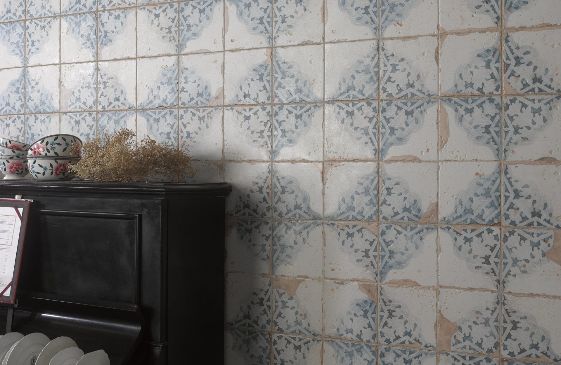 Color Damero A, para reforma de una tetería pequeña. Se consigue el aspecto envejecido y hogareño.