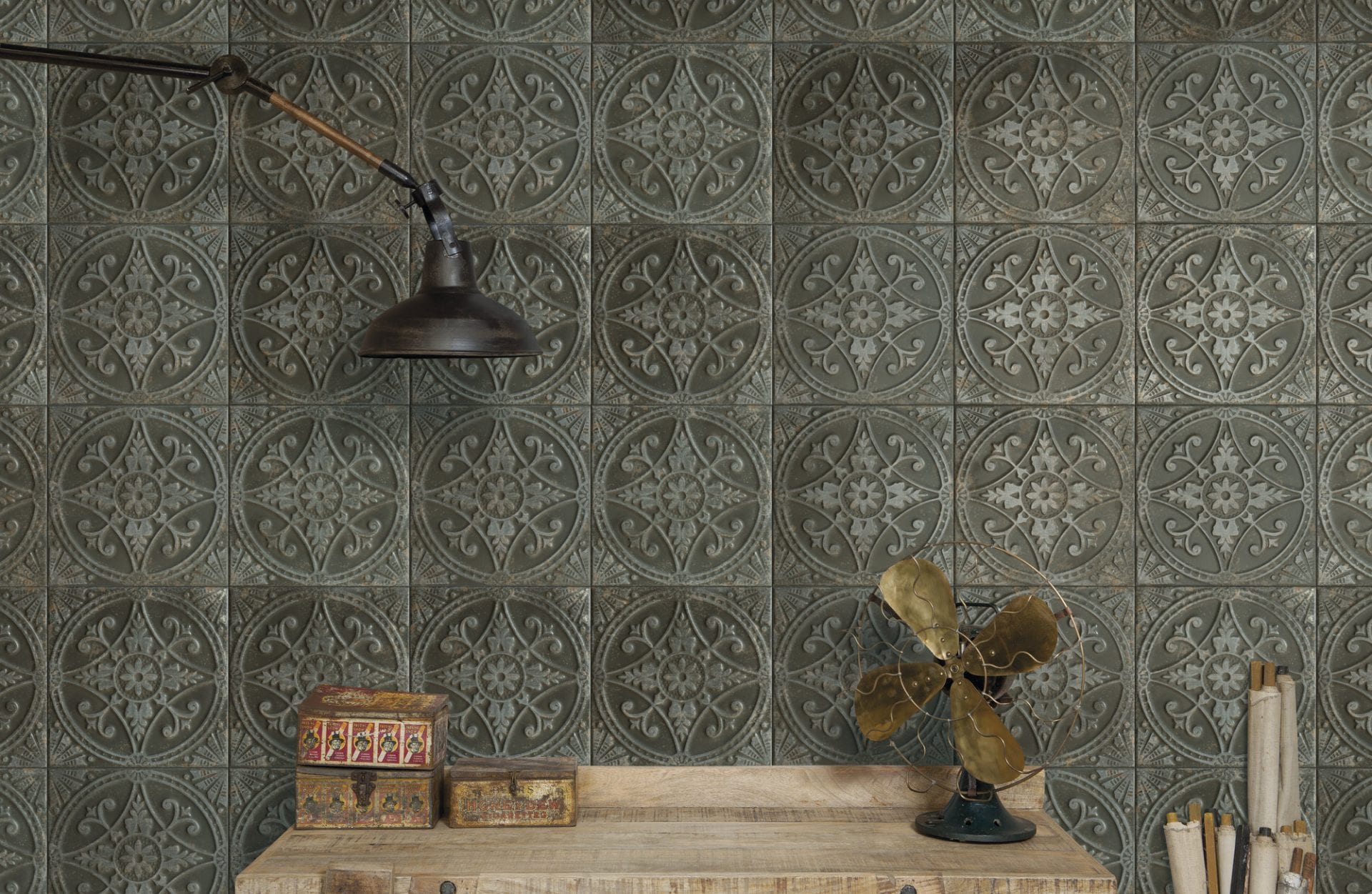 Francisco Segarra FS SAJA es la nueva colección firmada por el diseñador de interiores y mobiliario Francisco Segarra en exclusiva para Peronda. FS SAJA es un nuevo concepto cerámico dentro de la linea de producto FS by Peronda, puesto que explora un nuevo material para su inspiración como son los relieves metálicos. Su gráfica se inspira directamente de unos moldes metálicos oxidados que originariamente se utilizaban para dar forma a las molduras de yeso de los techos. La revisión de este concepto hacen de FS SAJA un producto original y único en el mercado que se presenta en dos tonalidades diferentes, Negro y Beige.