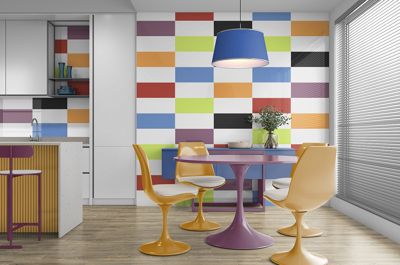 La serie Happy de Supercerámica es una colección de azulejos de revestimiento mural interior que combina estética, funcionalidad y sistema digital de impresión, ideal para proyectos decorativos que buscan color, luminosidad y estilo. Su acabado brillante y su acabado digital permite reproducir tonos precisos con gran riqueza cromática, y cada pieza refleja la luz con elegancia.