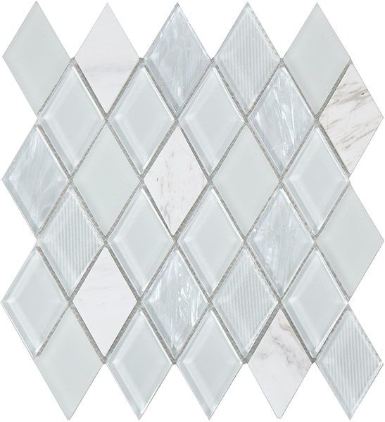 La Serie JEWEL WHITE es un azulejo realizado con vidrio y mármol estilo mosaico, que se presenta en acabado mate con brillo, con formato 25,8 x 26,8. Está pensado para revestimientos de interiores, dando un estilo elegante a la estancia.