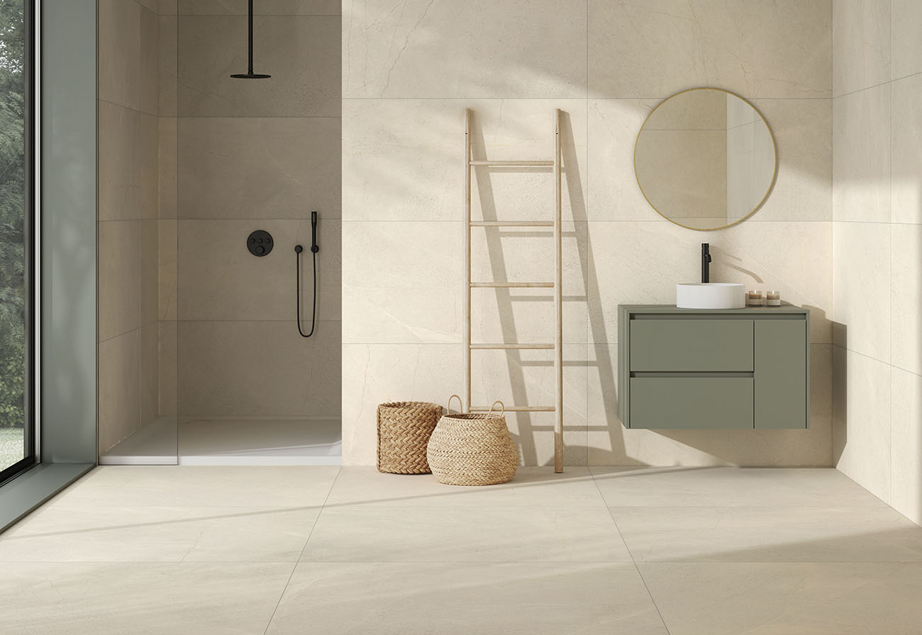 Descubre la versatilidad de las baldosas imitación piedra Kenzo, perfectas para crear espacios contemporáneos con un toque de calidez.