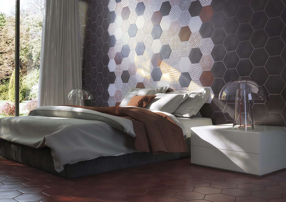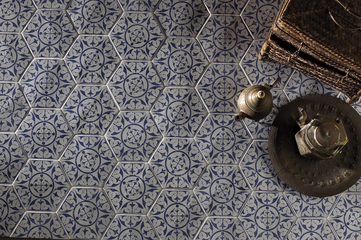 La Serie MARRAKECH es un azulejo de pasta roja tipo hidráulico en formato 15×17 hexagonal, presenta un acabado mate, y esta disponible en los colores :