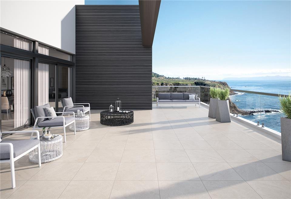 La Serie MILLS. Azulejo imitación cemento disponible en formato 60×60 rectificado con acabado antideslizante y con un espesor de 20 mm, perfecto para zonas exteriores.