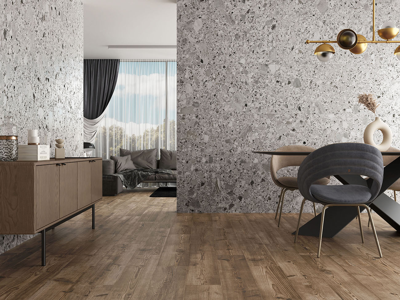 La serie Pamesa Pietra Di Gre celebra el encanto atemporal del terrazo, una piedra compuesta que ha cautivado con su belleza y versatilidad a lo largo de la historia. Esta colección de gres porcelánico ofrece una interpretación moderna del terrazo, con una armoniosa mezcla de tonos naturales que aporta calidez y estilo a cualquier espacio. Aunque no es una piedra natural en sí, Pietra Di Gre captura la esencia del terrazo, ofreciendo una alternativa duradera y práctica.
