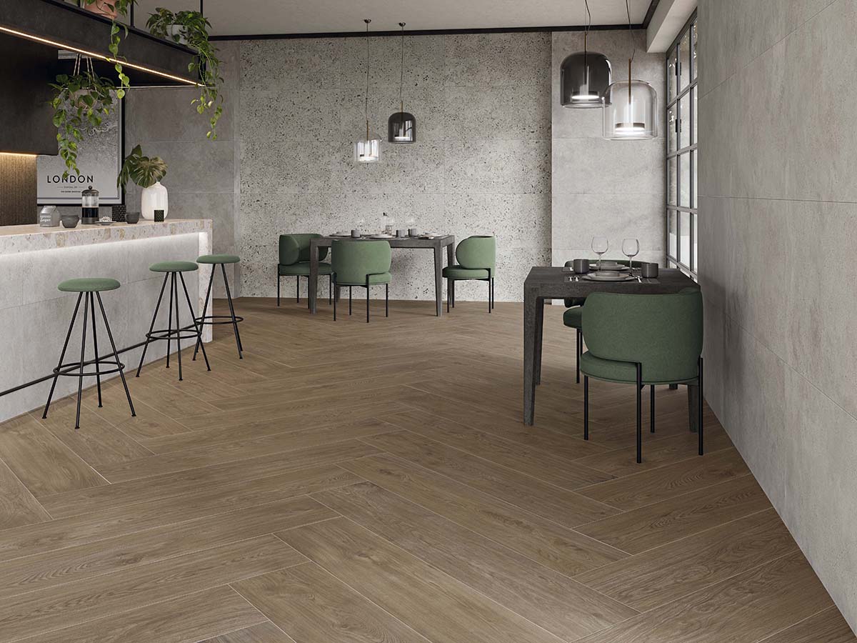 La Serie TYLER es un azulejo porcelánico imitación madera que se presenta en acabado mate y en tres formatos distintos: 15×90, 30×150, 23×120. Es ideal tanto para pavimentos como para revestimientos.