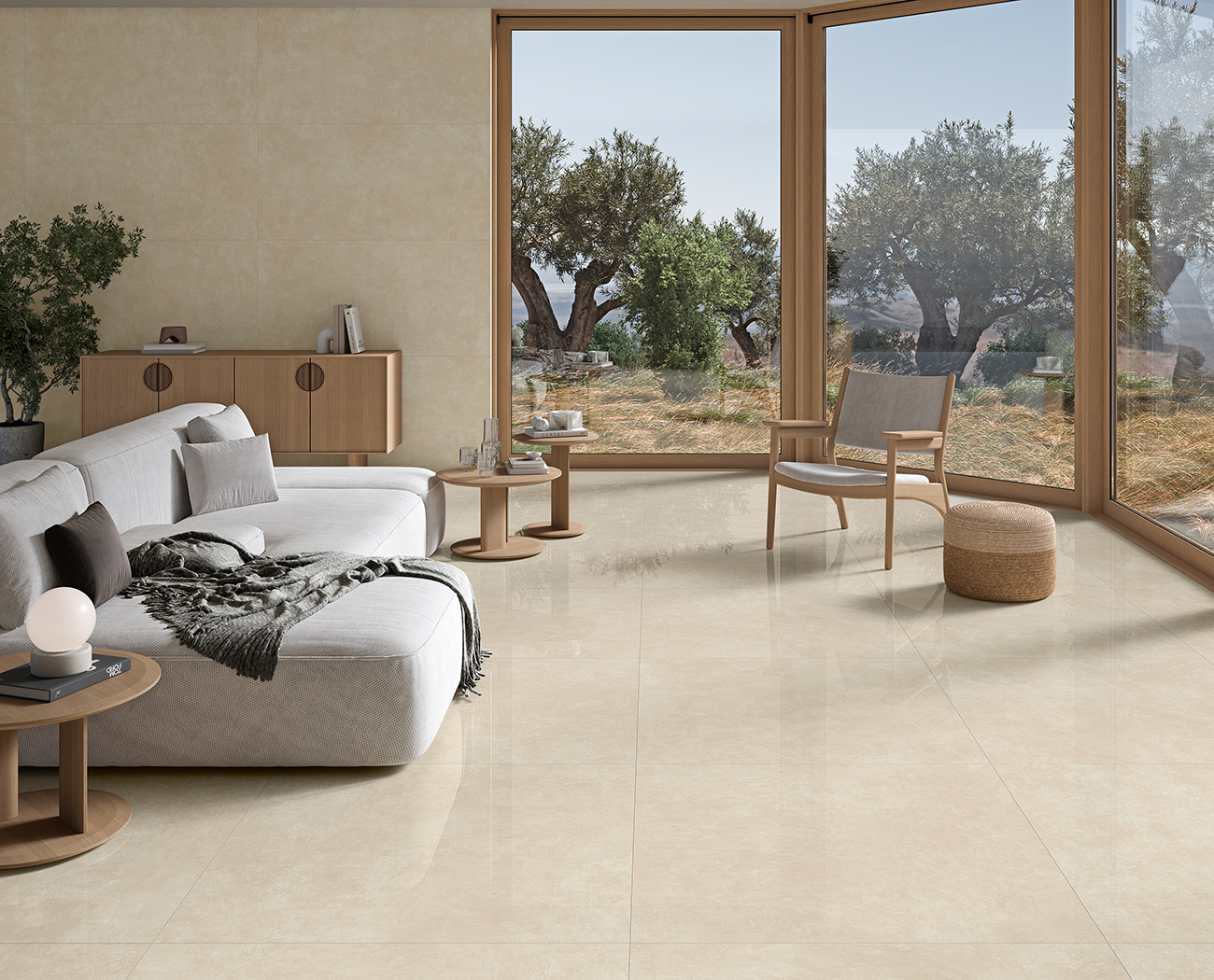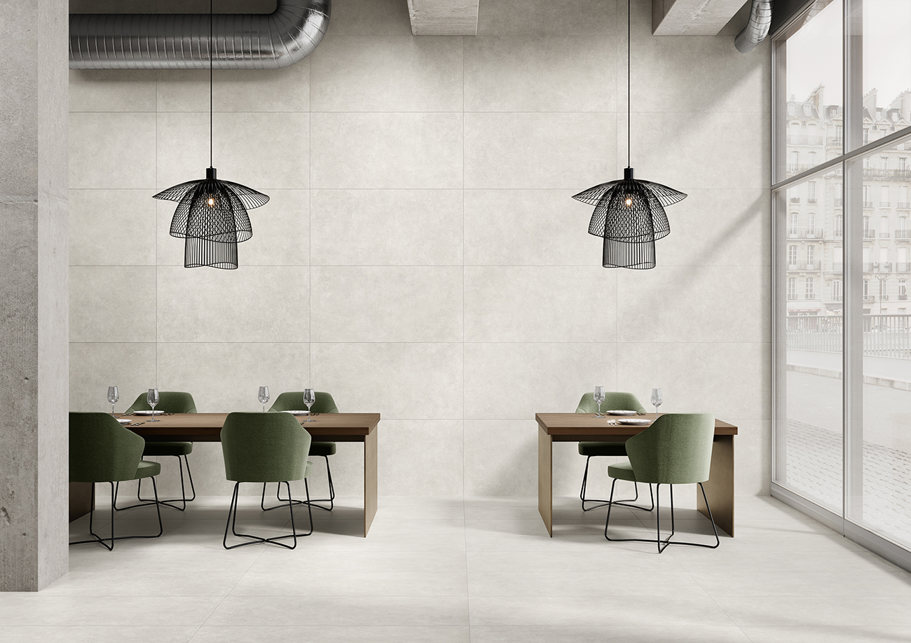 La serie está disponible en formatos versátiles como 60×120 cm, 75×75 cm y en 33,3×90 cm en pasta blanca rectificada para revestimientos. Todos los formatos presentan un acabado mate, excepto el 100×100 cm, que se ofrece en un elegante acabado pulido, ideal para aquellos que buscan un brillo refinado en sus espacios interiores.