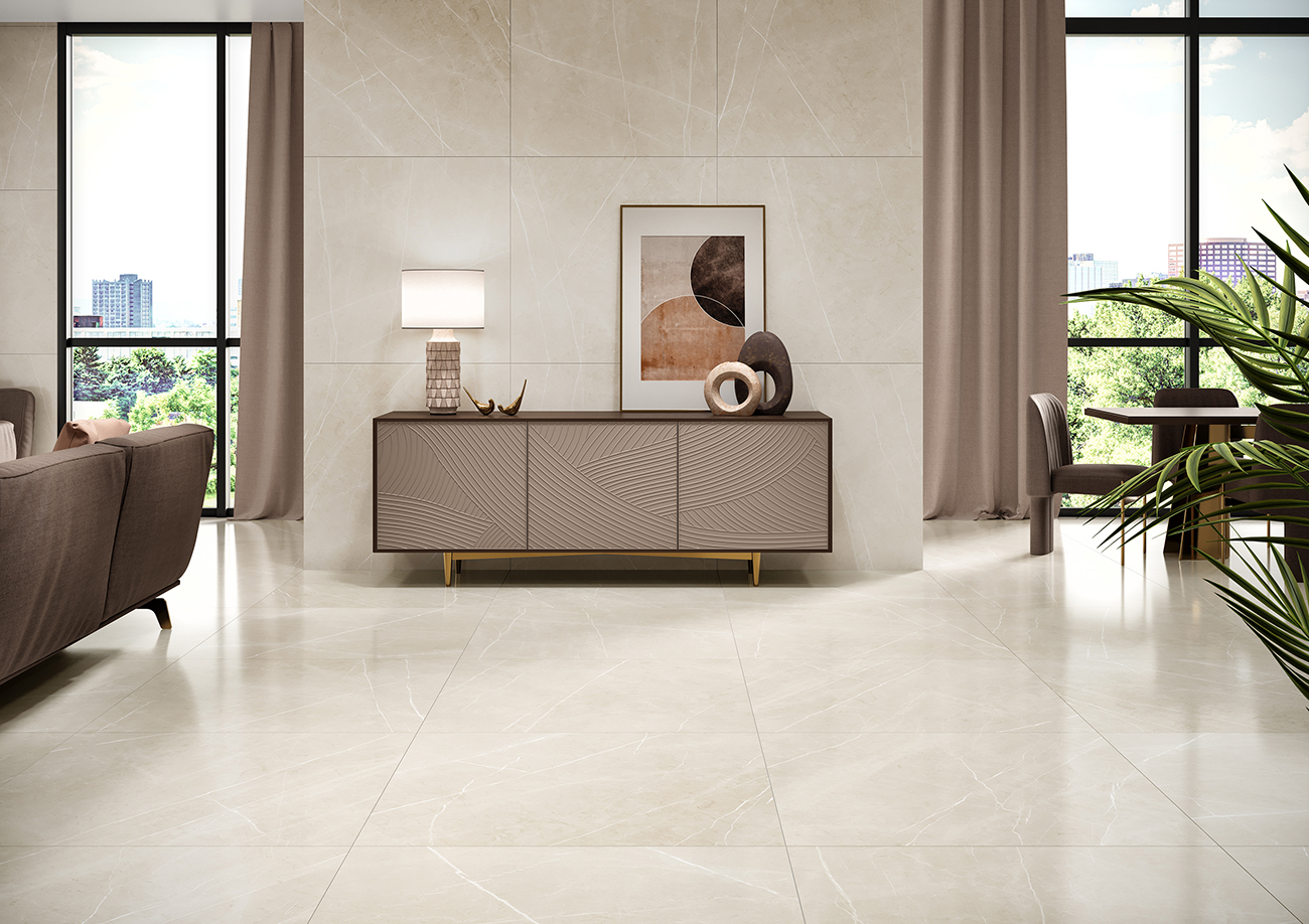 60×120 cm, disponible tanto en acabado satinado como en pulido, ideal para crear ambientes refinados con un toque de brillo o un aspecto más suave.