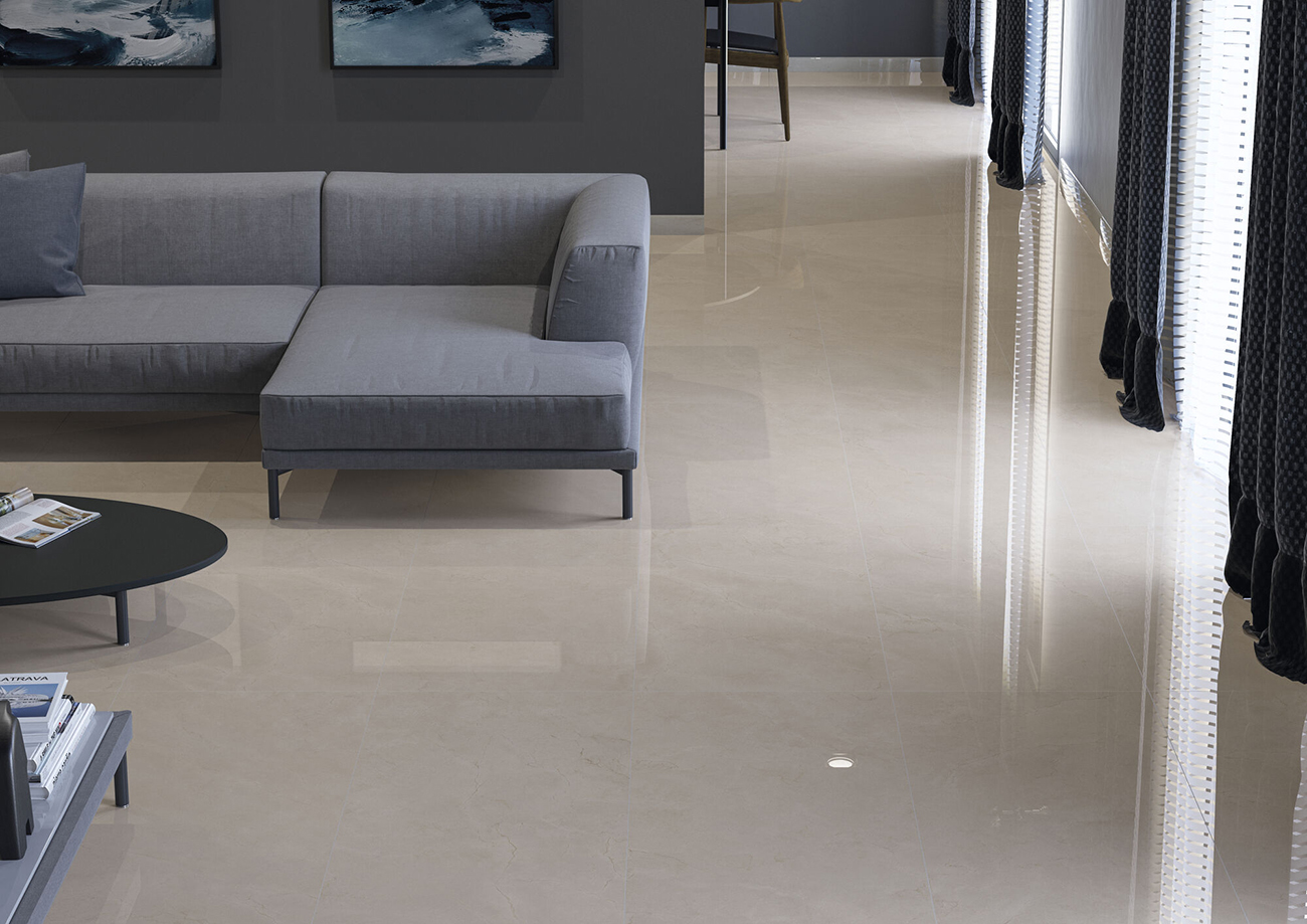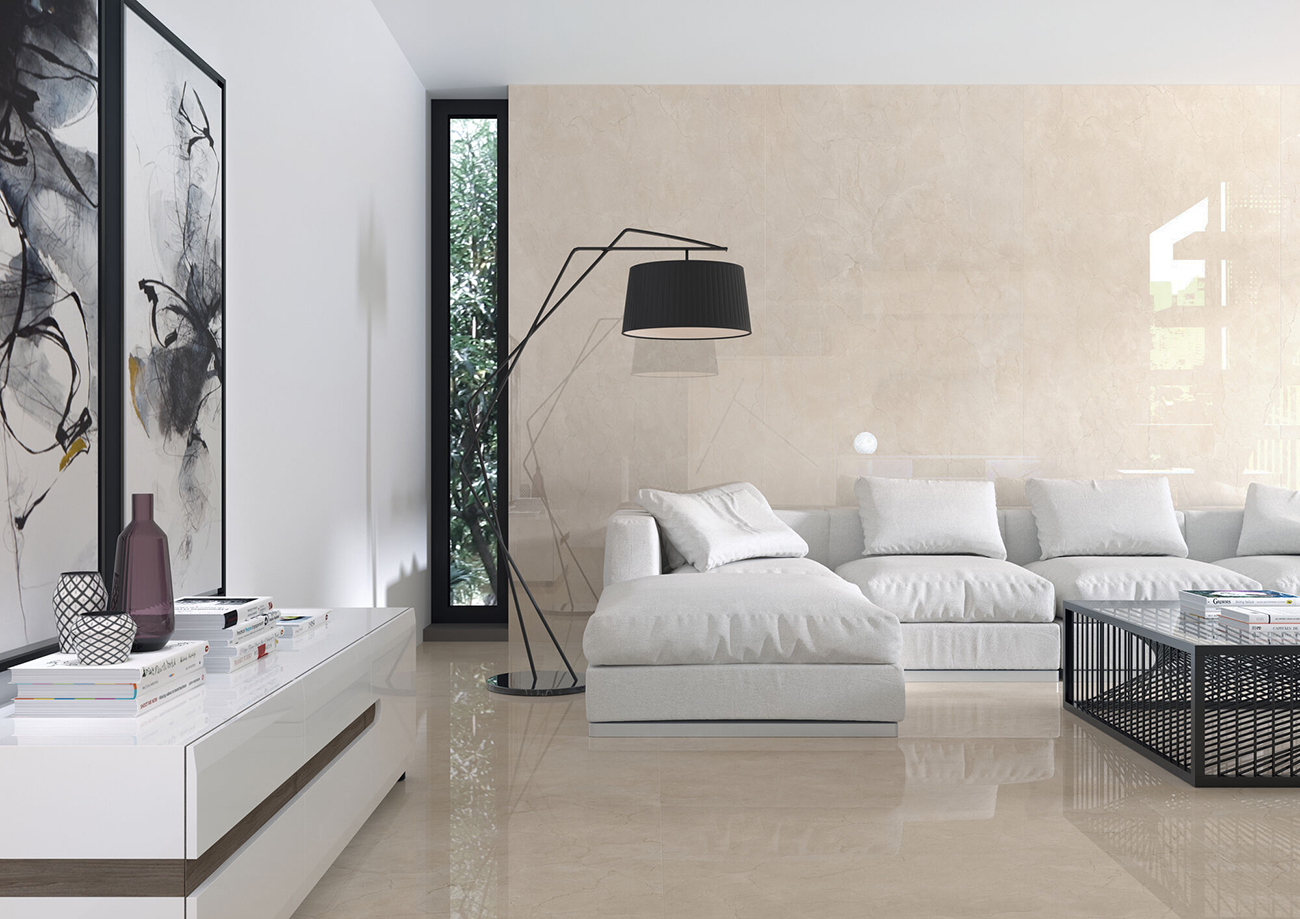 Inspirada en la belleza del mármol crema, esta colección de pasta porcelánica combina la luminosidad y la calidez de este material con un acabado pulido que aporta un toque sofisticado a cualquier espacio.