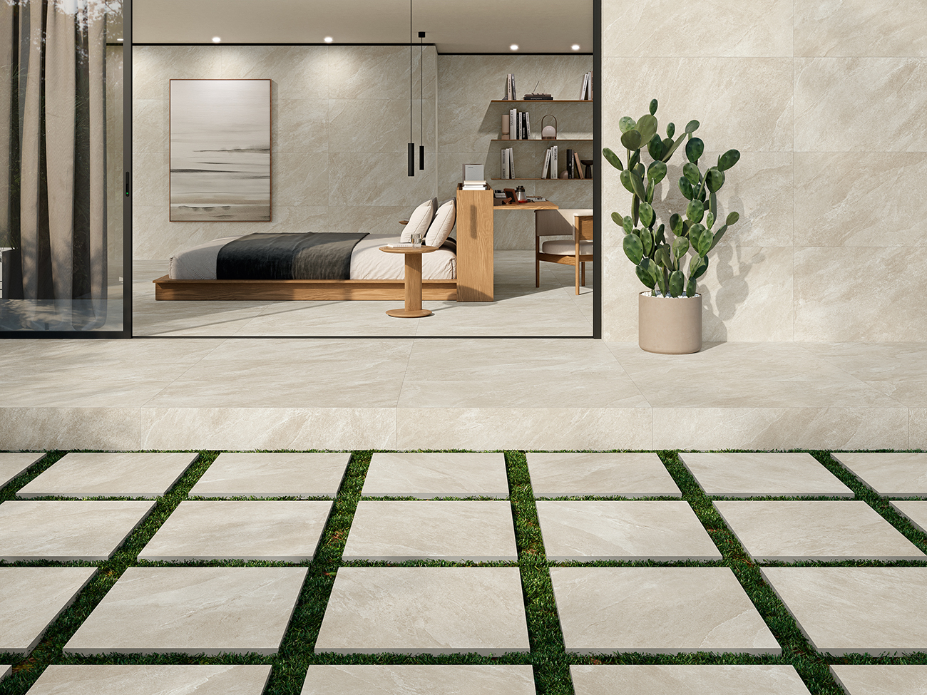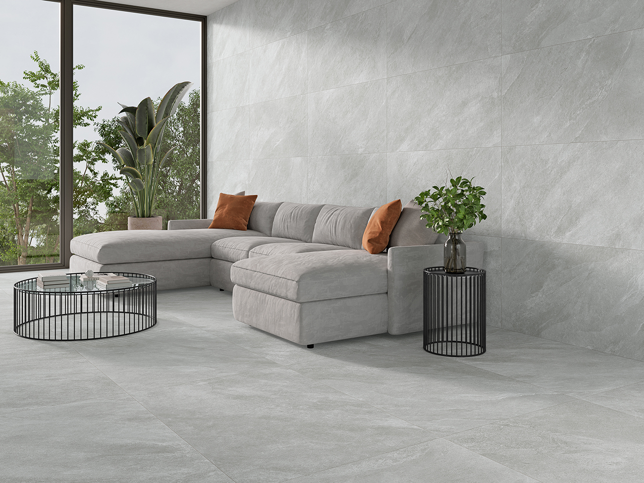 Disponible en una variedad de formatos, que incluyen 60×60 cm, 30×60 cm, y 60×120 cm, esta serie permite crear superficies amplias y continuas, adaptándose a diferentes tipos de espacios y estilos decorativos. Además, la versión 60×60 cm con un grosor de 20 mm está diseñada con acabado antideslizante C3, lo que la convierte en la opción ideal para áreas exteriores y zonas de alto tránsito que requieren mayor seguridad sin comprometer el diseño.
