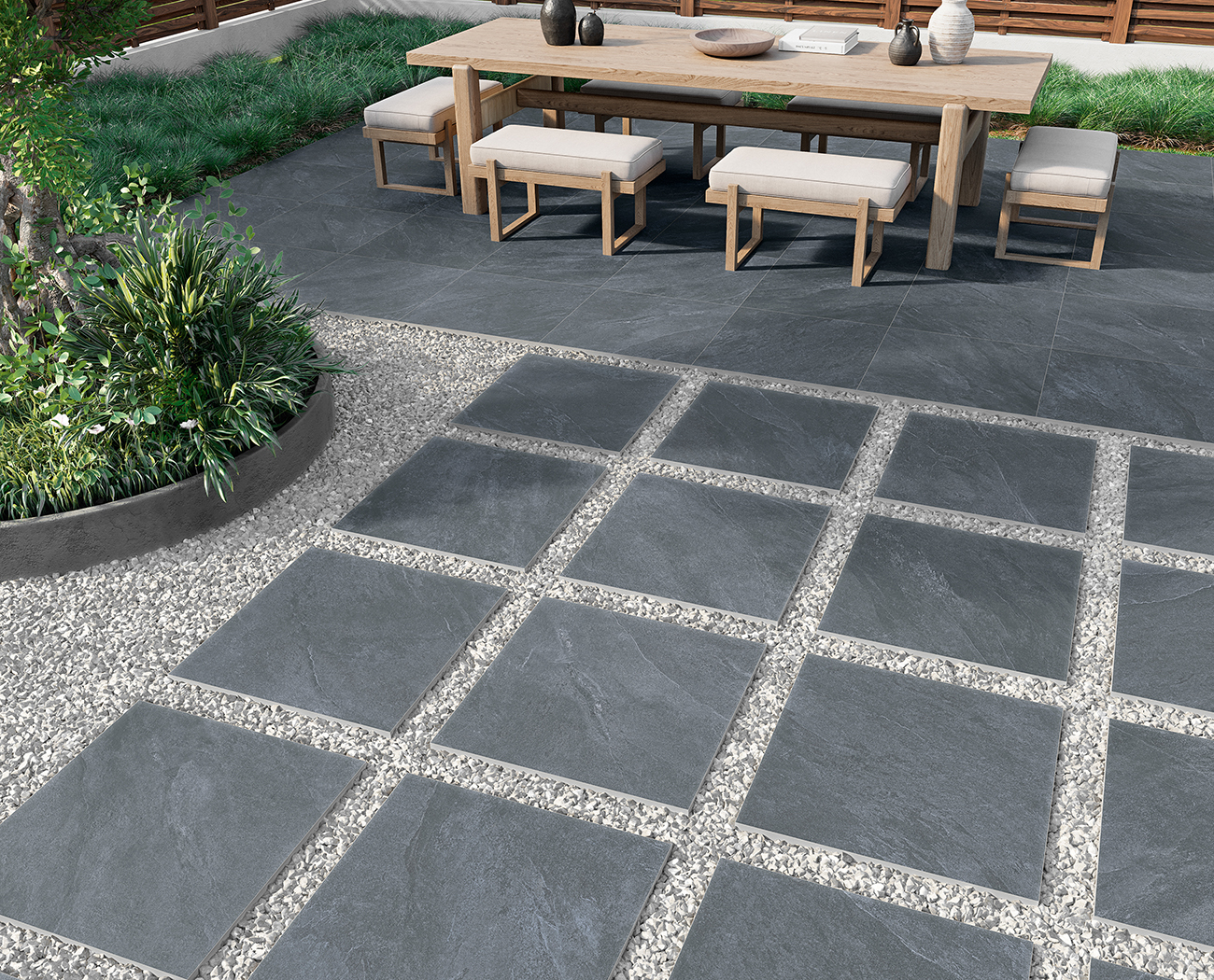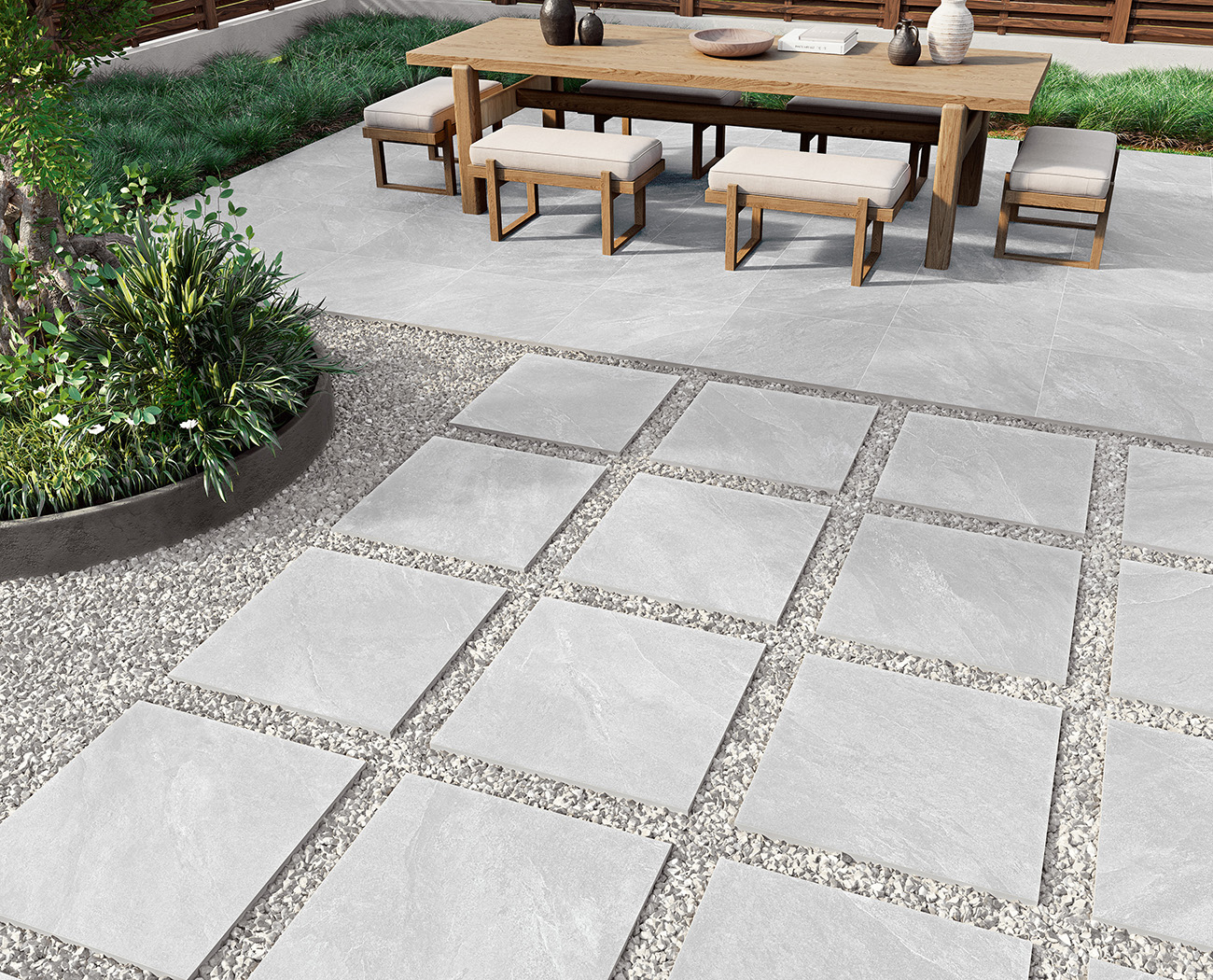 El formato 60×60 cm (20 mm) con acabado antideslizante C3 es especialmente adecuado para áreas como patios, terrazas o jardines, donde la seguridad es prioritaria, manteniendo una estética moderna y atractiva.