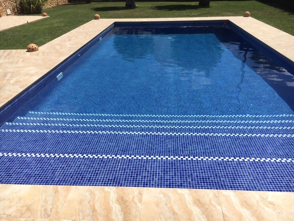 Gresite para piscina en color Azul Piscina de 2.5×2.5 en malla de silicona.