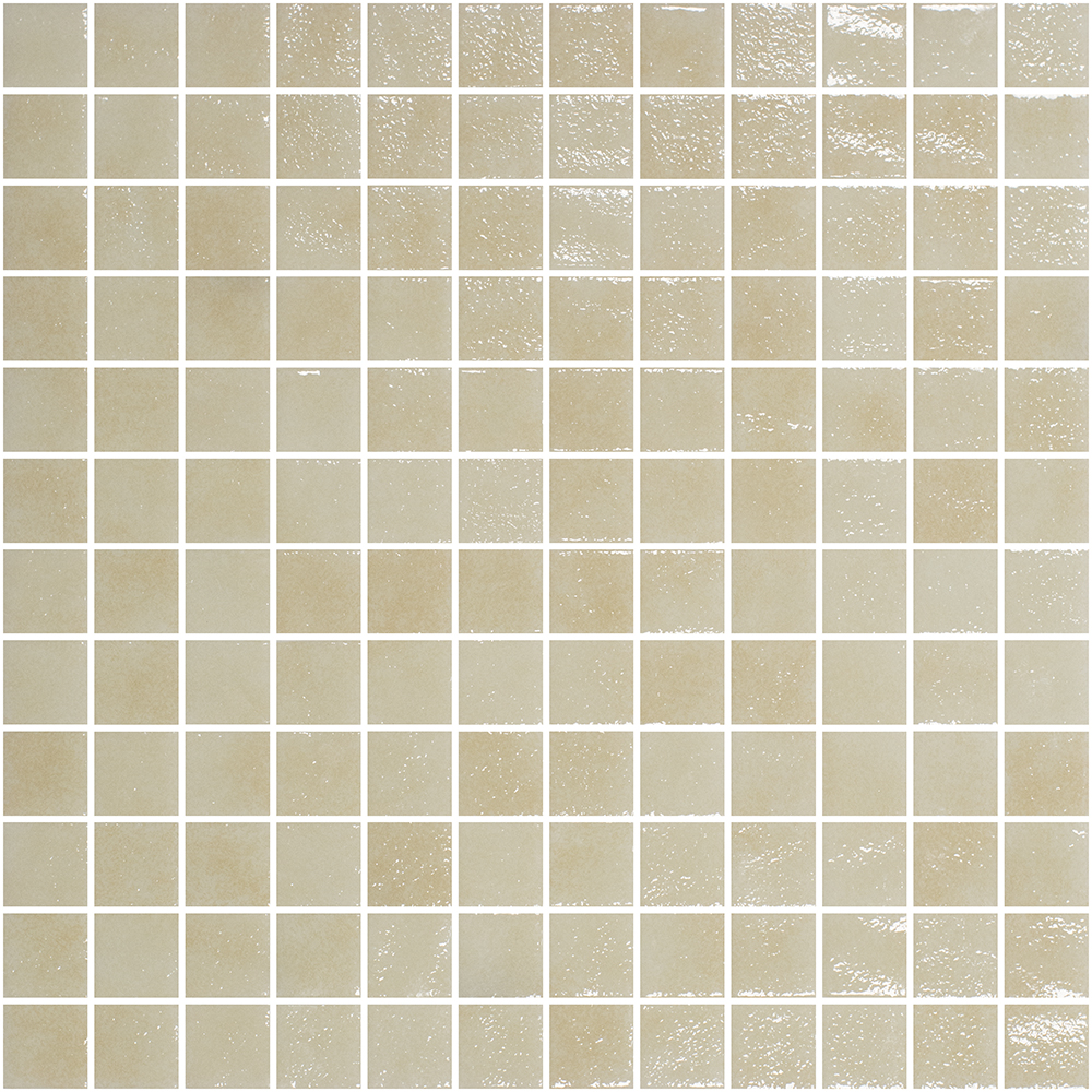 Gresite para piscina en color beige de 2.5×2.5 en malla de silicona.